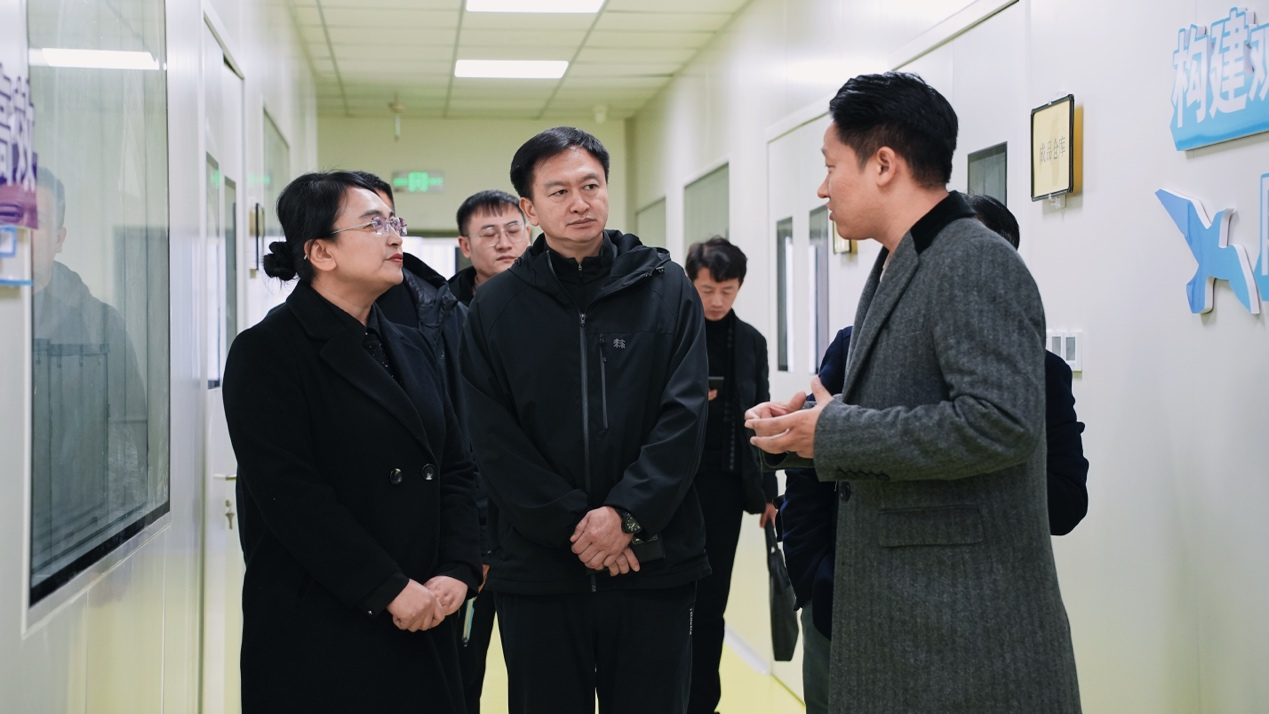走進眾合科技產業園區,科學抗衰研究院首席科學家王國梁博士,帶領王書記一行參觀了煋醫科技的醫療器械CDMO工廠和獨立醫學檢驗實驗室。王博士表示,煋醫科技具備從技術可行性分析、原型開發到小試中試的一站式概念驗證服務的能力,可助力破解大健康產業發展過程中可能遇到的法規合規、工藝放大、質量一致性等系列問題。